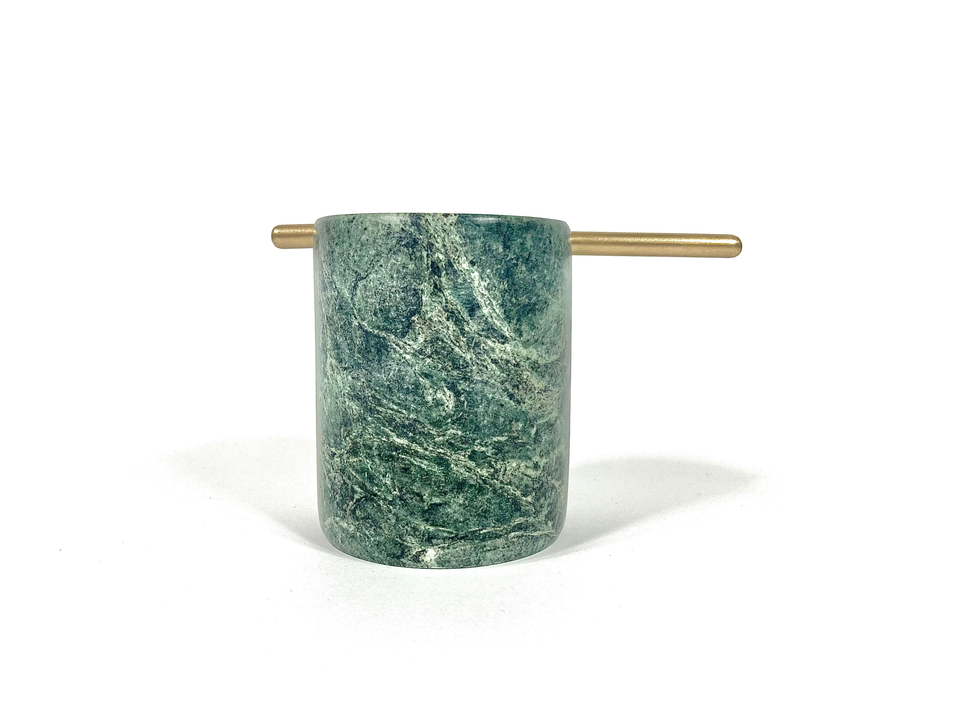 The Ashtry Cylinder is a stylish and functional ashtray designed to complement any space. Crafted with a luxurious finish of marble and brass, it serves as a sophisticated accessory for smokers or a decorative piece for any tabletop.