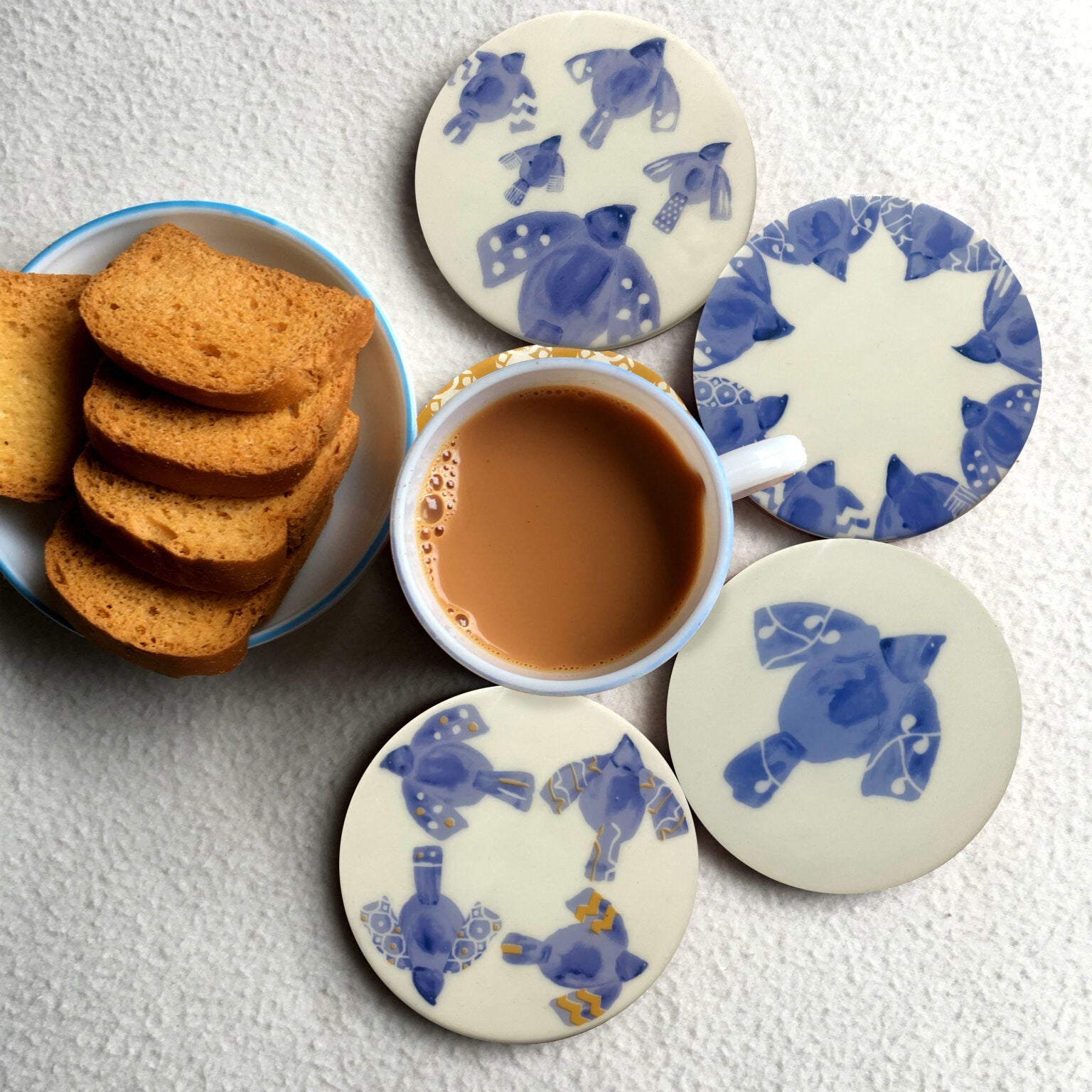 Meet the Birdies Coasters! Our Birdies have been a cherished part of our family from day one, bringing a touch of personality and warmth to your space. With a diameter of 10 cm, these coasters are perfect for protecting your surfaces while adding a unique charm to your decor.