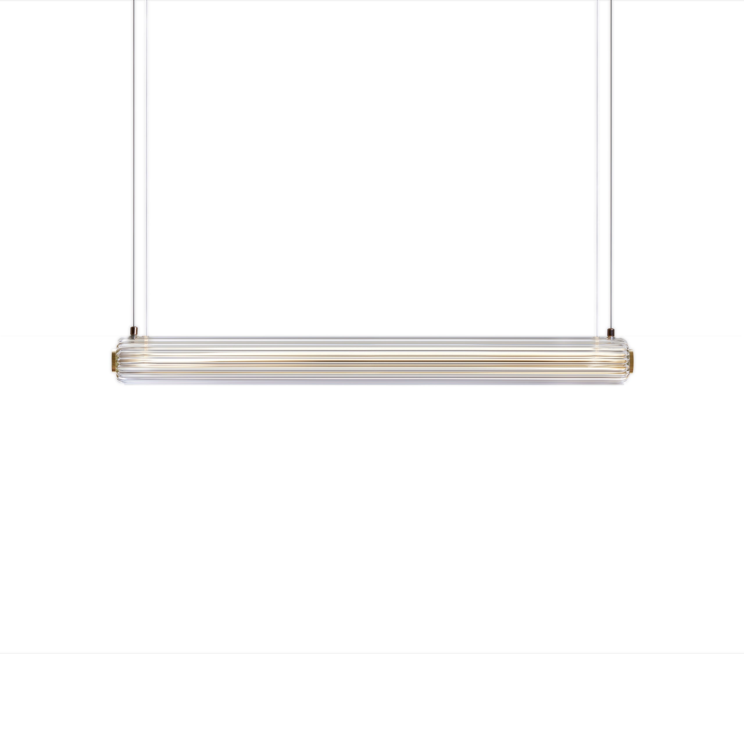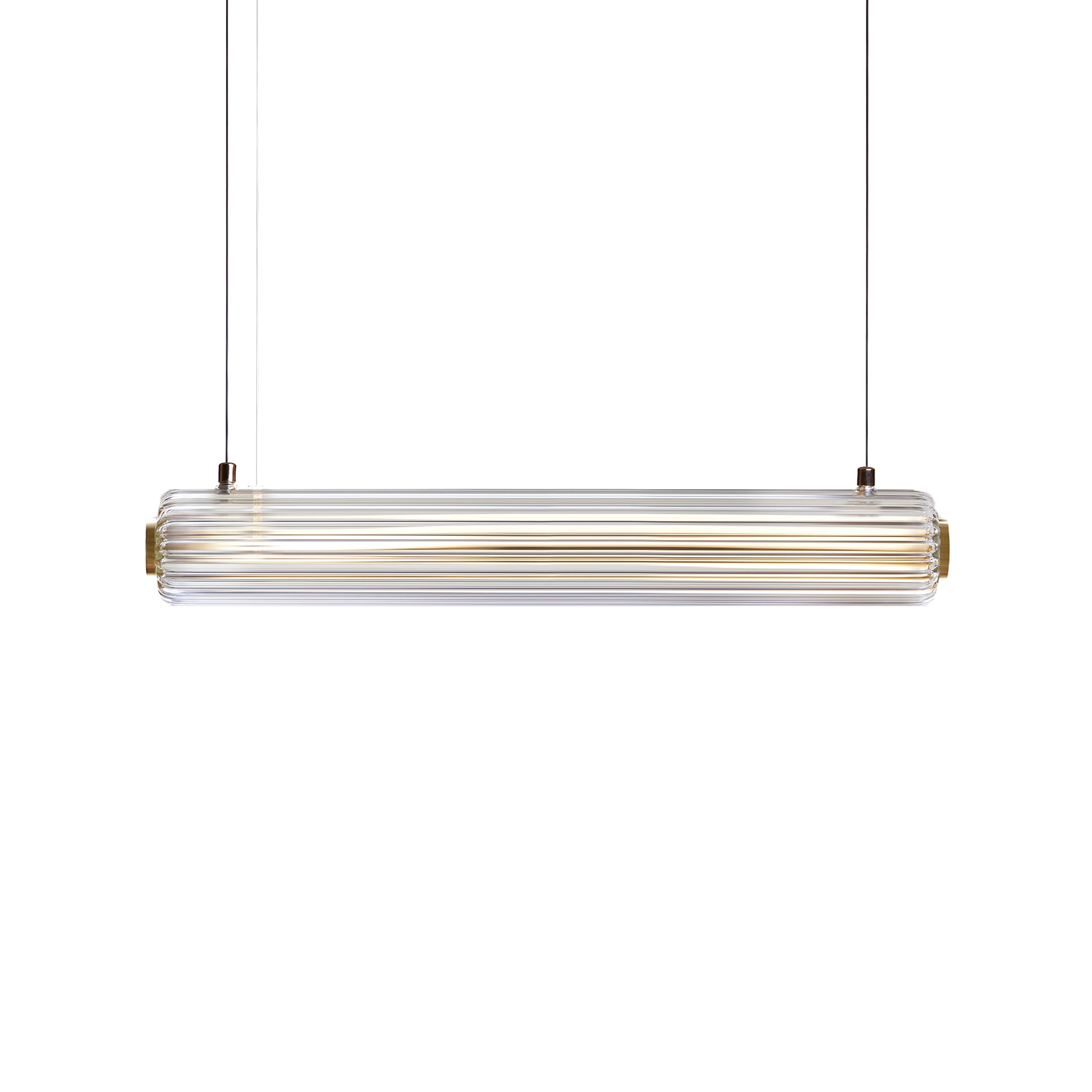 This pendant light is handcrafted from durable borosilicate glass, offering a sleek and modern lighting solution. Its clear design enhances any interior with elegant illumination.