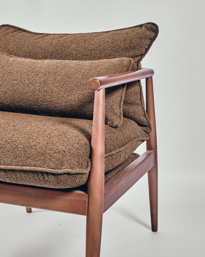 The Destiny Armchair combines elegant design with comfortable functionality, making it an ideal addition to any living space. Crafted with a sturdy walnut wood frame and upholstered in high-quality fabric, this armchair offers both style and comfort for relaxation or social gatherings.