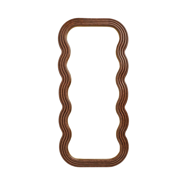 The Elara Mirror is a striking full-length mirror that embodies the graceful flow of nature through its uniquely designed frame. Crafted with beautifully contoured wooden waves, it introduces an organic elegance to any interior space. The rich wood tones and undulating curves create a warm, inviting atmosphere, making it an ideal statement piece for your home.
