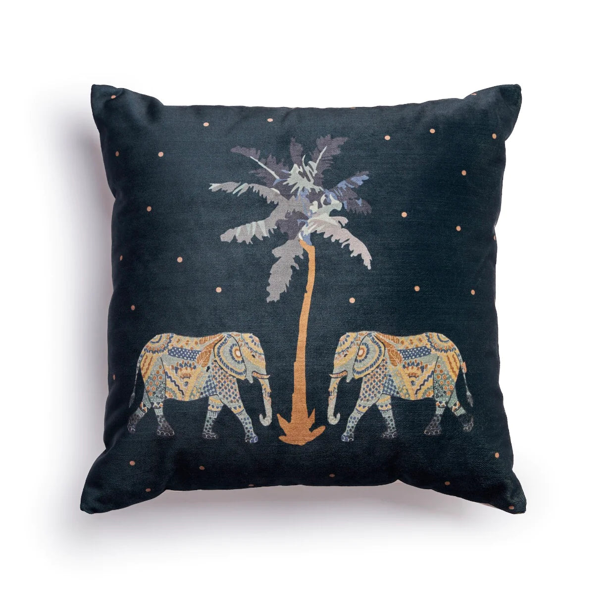 The Elephant's Palm cushion is a beautifully crafted piece inspired by the extravagant flora of the Himalayas and the rich patterns of India. This cushion serves as a stunning decorative accent, adding a touch of elegance and cultural flair to any space.