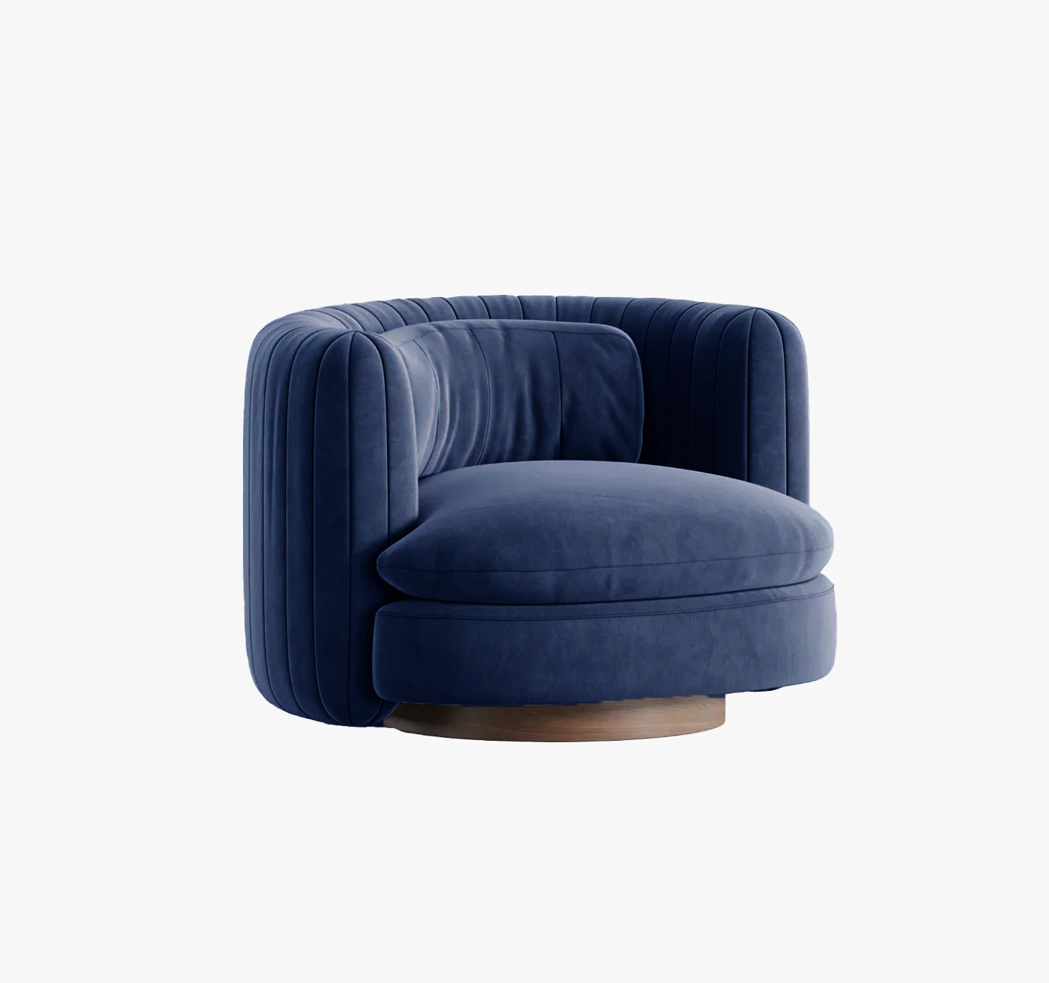 An elegant chair featuring plush velvet upholstery and a sturdy wood base, designed for comfort and style.