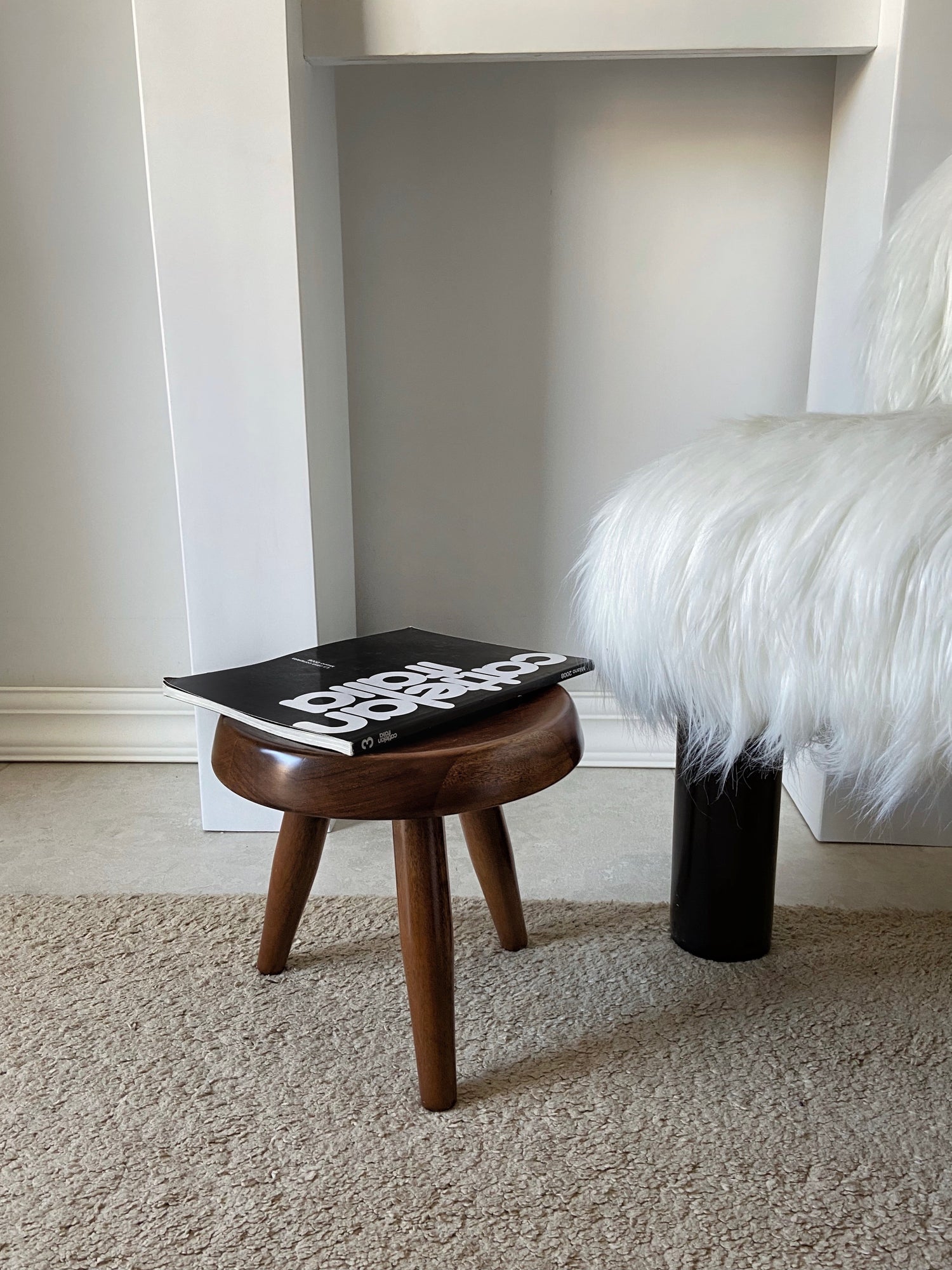 The Meribel Stool is a beautifully crafted piece, showcasing a unique design characterized by three elegantly “cut” finished legs. Handmade from darkened teak, this stool brings a touch of natural elegance to any space, making it ideal for both functional use and decorative purposes.