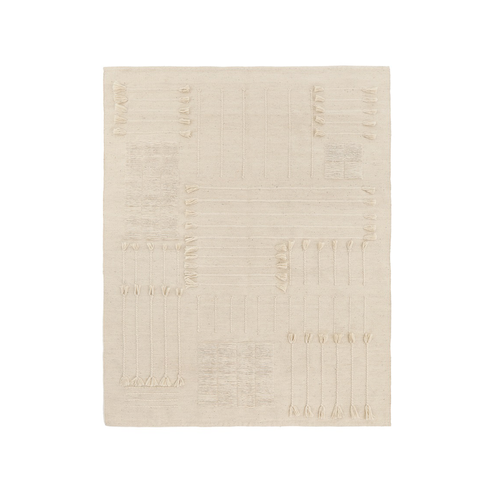 A hand-woven wool rug crafted on a durable cotton base, combining natural fibers for a refined look.