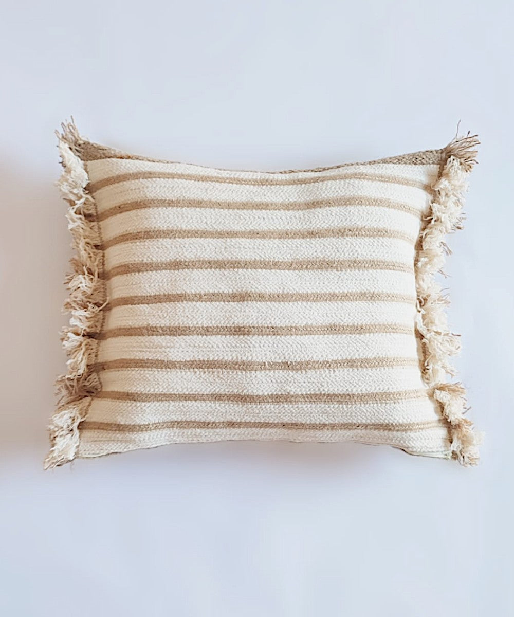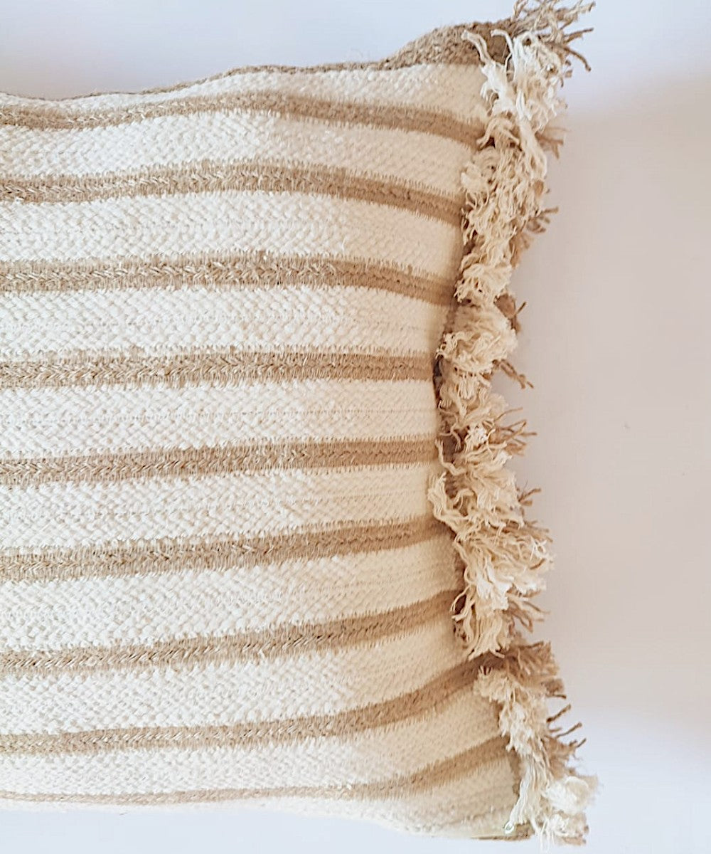 Enhance your living space with the Stripped Jute Cushion. Order yours today and enjoy the perfect blend of comfort and style!