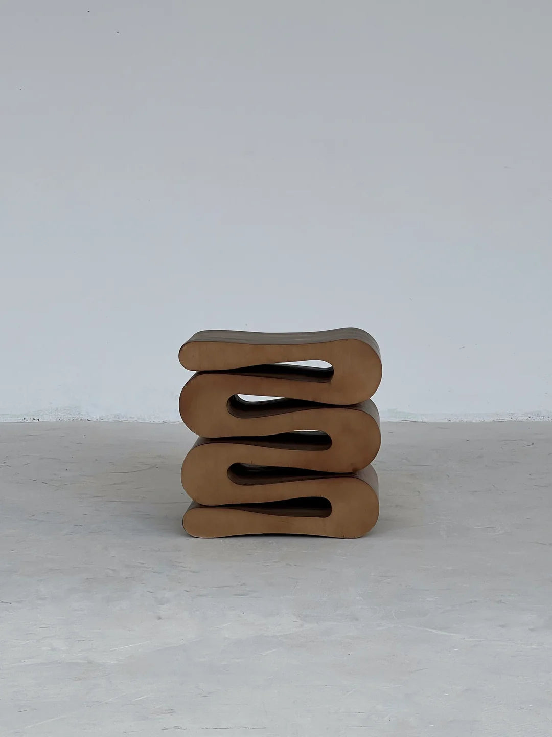 The Wiggle Side Table is a modern and functional piece that blends seamlessly into any living space. Crafted from layered plywood, this table offers both durability and a sleek aesthetic, making it a perfect addition to your home decor.