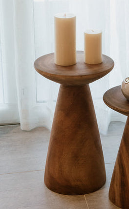 A wooden side table that can also work as an extra seating at your living space. Large: 35cm (diameter) x 50cm (height)